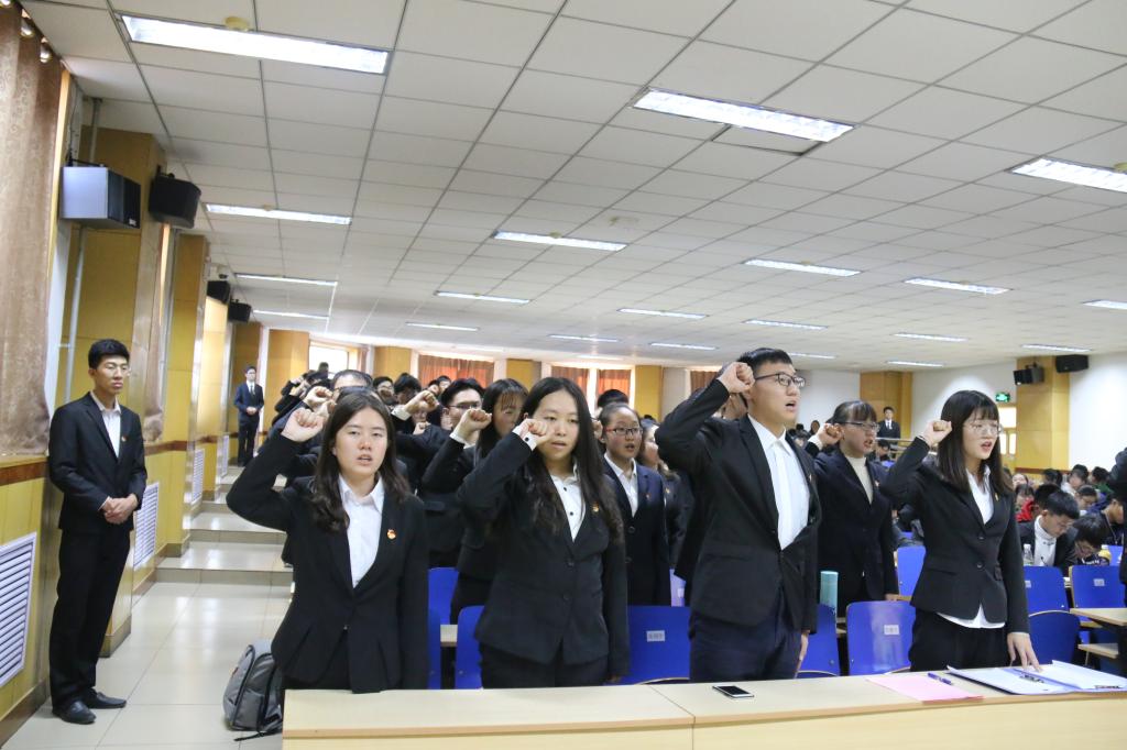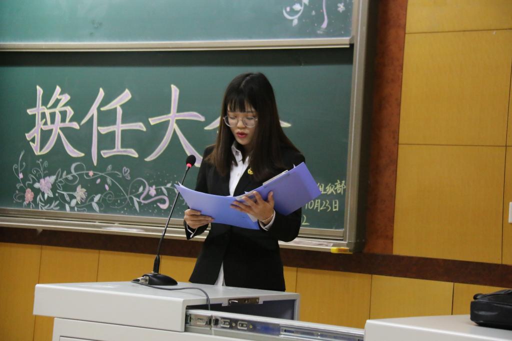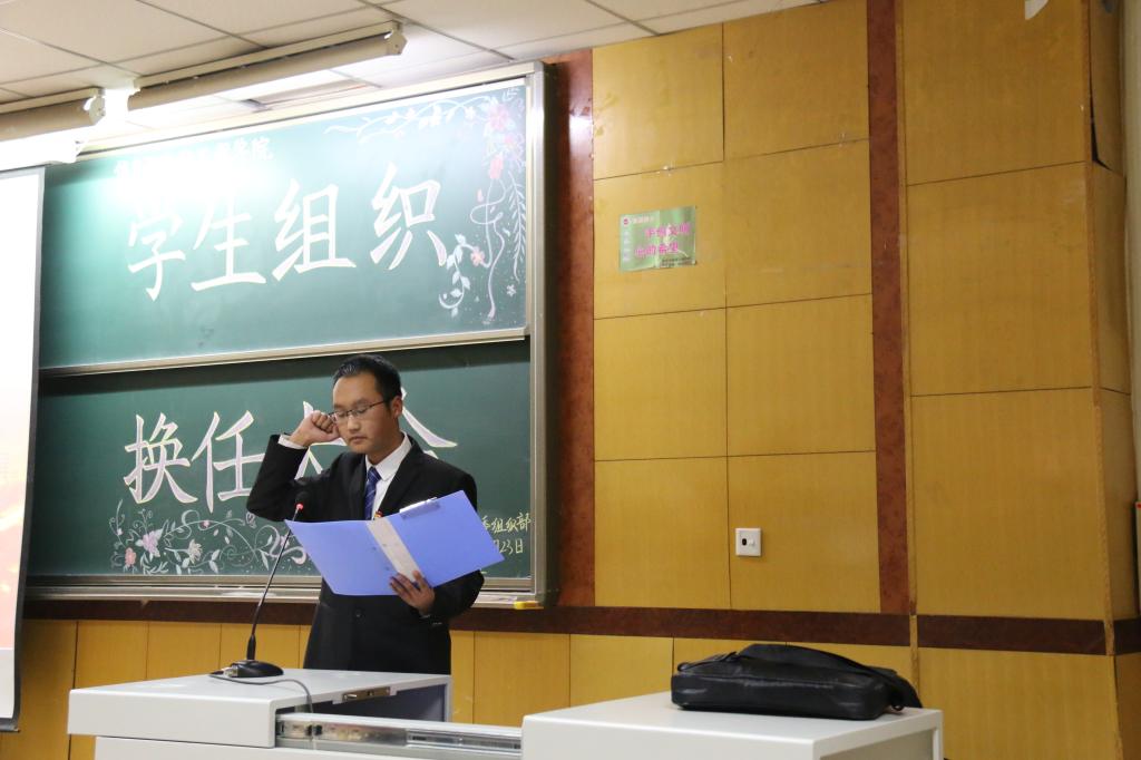 随后魏书记宣读了2017年度学生干部名单并为优秀学生干部代表颁奖。紧接着学生科科长任雁老师宣读学院学生组织干部的任命书,并由刘新璐同学领誓新一届全体学生干部宣誓,表明他们作为新一届学生干部为老师同学服务的决心。其后张馨方同学作为2018年度学生干部代表发言。