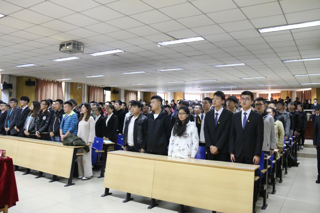 大会伊始,全体起立并奏中华人民共和国国歌。杨鸿泽同学作为2017年度学生干部代表发言,他回顾了自己从作为一名干事到现在作为大会2017年度学生干部代表的经历,指出作为一名学生干部最重要就是责任和担当。