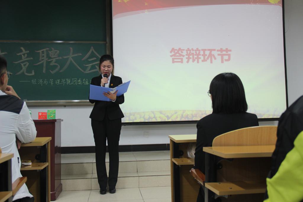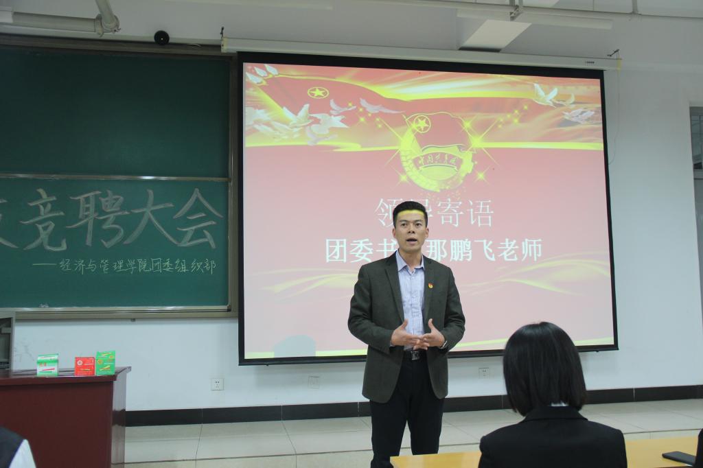 10月13日晚7:00,经济与管理学院在15102教室举办团总支竞聘大会。院团委书记那鹏飞和我院部分团委学生会部门部长及以上学生干部担任嘉宾和评委。2017级和2018级每班团支书等五名学生参与大会。