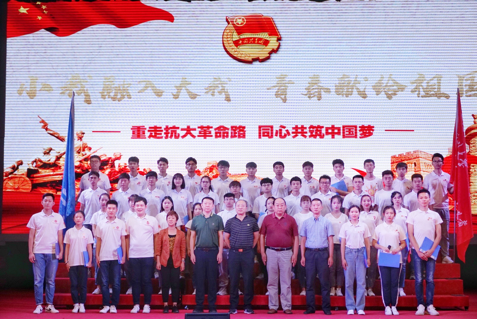在庆祝新中国成立70周年和建校78周年之际,在校党委副书记薛智教授的亲自指导下,党委宣传部、学生工作部(处)、马克思主义学院等部门和学院给予了有力支持和专业辅导,校团委组织2019级校“青马”骨干学员认真准备,以“重走抗大革命路 同心共筑中国梦”为主题,用亲身经历向伟大祖国深情告白,向祖国七十华诞庄严献礼。