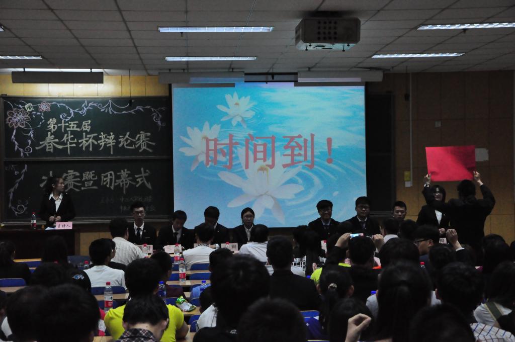 2015年5月22日晚上19:00,由校团委、校学生会主办的第十五届“春华杯”辩论赛总决赛在11108教室拉开帷幕。担任本场比赛的评委有:党委宣传部部长薛实军、计算机与控制工程学院党委副书记杨晓东、人文社会科学学院林红老师、杜刚老师以及校团委副书记李俊华、魏翀老师。