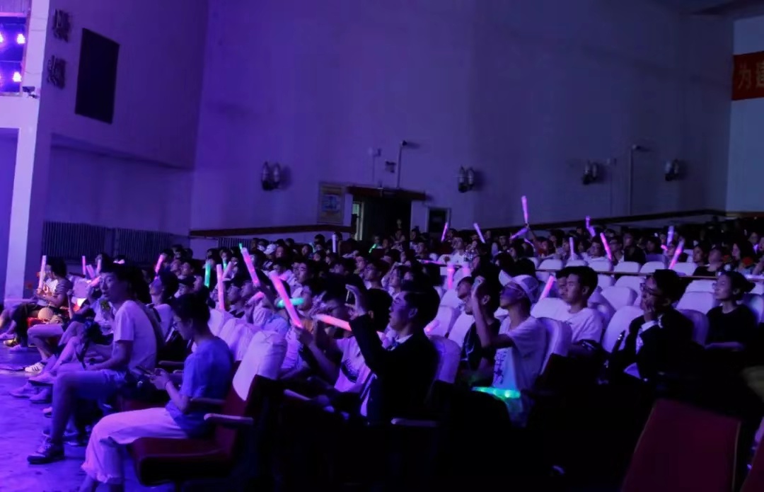 大四毕业生宋鹏龙现场为大家深情献唱两曲,这是宋鹏龙在中北大学的最后一次演出,也是我们最后一次听到他动人的歌喉了。在场 观众纷纷举起手上的荧光棒,挥动拍手器,和宋鹏龙一起完成了最后的精彩演出。