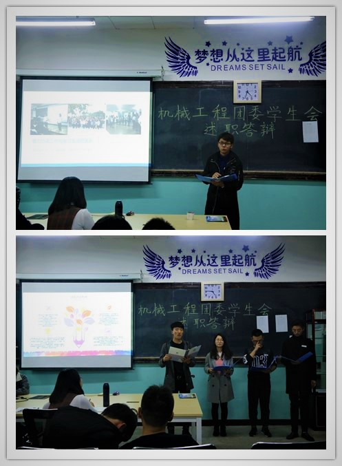 为进一步做好学生干部在新形势下本职工作的能力和信心,高质量、创新性的完成学生工作,3月2号至3月4号,机械工程学院在05105展开了为期三天的2017-2018学年团委学生会干部培训会。团委学生会全体学生干部参加了此次培训会。培训包括读书会分享,工作计划讨论,培训交流,述职答辩等部分。