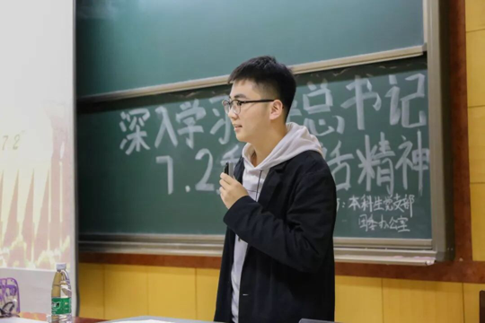 随后,艺术学院二支副部书记常德潇学长讲述对总书记“7.2”讲话的感悟。以古人“合抱之木,生于毫末;九层之台,起于累土;千里之行,始于足下。”的观点进一步阐述青年一代对于国家的重要意义,“青年兴,则国家兴;青年强,则国家强”,大家所熟知的中国梦需要每一个青年人共同努力,实现我们伟大的中国梦。最后,田维飞书记总结人才和道德之间的关系,并对参会人员提出要求,第一要坚定理想信念,树立成才观。第二要坚定正确的价值导向,做品格高尚的人。第三要树立终身学习的观念。第四要始终坚定政治站位,坚定不移的跟党走。第五是重要坚守底线意识,要始终树立一颗红心。第六是要树立健康第一的理念。并且希望大家能够带来更多的正能量。