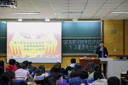 2018年10月25日晚七点,为深入学习习近平总书记“7.2”重要讲话精神和贯彻团的十八大精神,我院组织全院党员及各级学生干部积极学习。出席本次大会的有副党委书记田维飞老师和党支部学生干部。