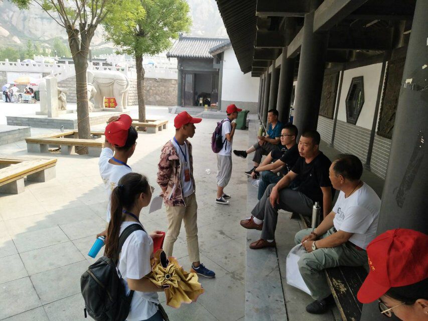 7月3日清晨,伴着习习微风,朝阳队成员在西荣华村小学会议室详细总结了第一天的实践活动并详细部署了今天前往天牙山的安排,说明此行的目的、意义,并邀请当地村委会成员与实践队一同游览天牙山,队员们气氛高涨,信心满满。在乘车去往天牙山的过程中他们认真观察了周围村落的特点,为实践队下一步了解当地乡土人情奠定了一定的基础。