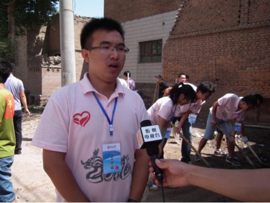 最后,忻州电视台采访了实践队队长孔庆鹏。他表示:作为当代大学生参加志愿活动的过程中,不仅在各方面给社会群体以帮助、关心,同时,自身在道德实践中也获得了反省和提升的机会,使大学生真正成为有社会责任感的先进群体。