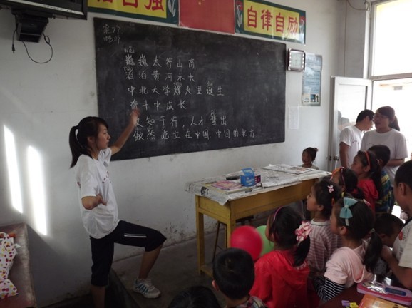 早上八点,我们对孩子们进行了一对一的辅导教育,讲授习题,答疑解惑。然后,我们将中北校歌教给了小朋友们,在豪迈激昂的校歌氛围中,大家全神贯注的学习、歌唱。