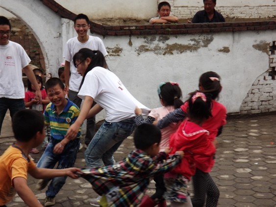 天真无邪的小朋友们感染着我们,他们的一举一动牵动着我们的心,大家瞬间变成了一群童心未泯的成年人。天空依旧,绿水依旧,我们的实践还在继续……