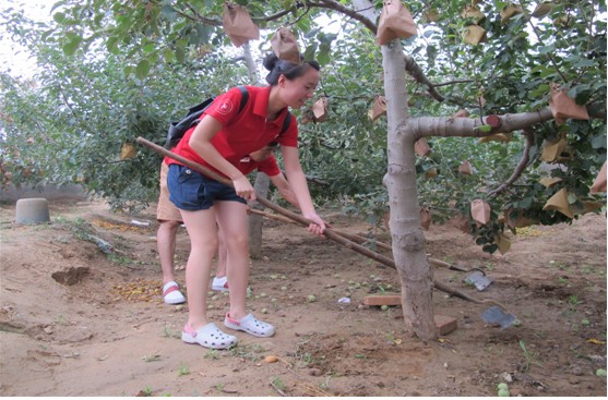 随后,我们在果农的指导下,大家热火朝天的干起了农活。看着我们的劳动成果,大家露出来开心的笑容,果农对我们大加赞赏。
