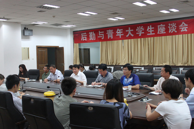 为了更好地服务师生,及时解决学生反映的涉及供暖、水电、采购、公寓洗涤、公寓安全、维修及时率、饭菜质量、饭菜价格、服务态度等问题,2012年5月11日下午,沈兴全副校长主持召开了以“沟通联系你我,理解促进发展”为主题的后勤服务座谈会。参加座谈会的有校团委书记叶玉刚、后勤管理处处长郭立槐、校医院院长吴芳芳、后勤服务集团总经理赵安民、副总经理孙建勋、保卫处副处长李斌以及来自各学院的20余名学生代表。