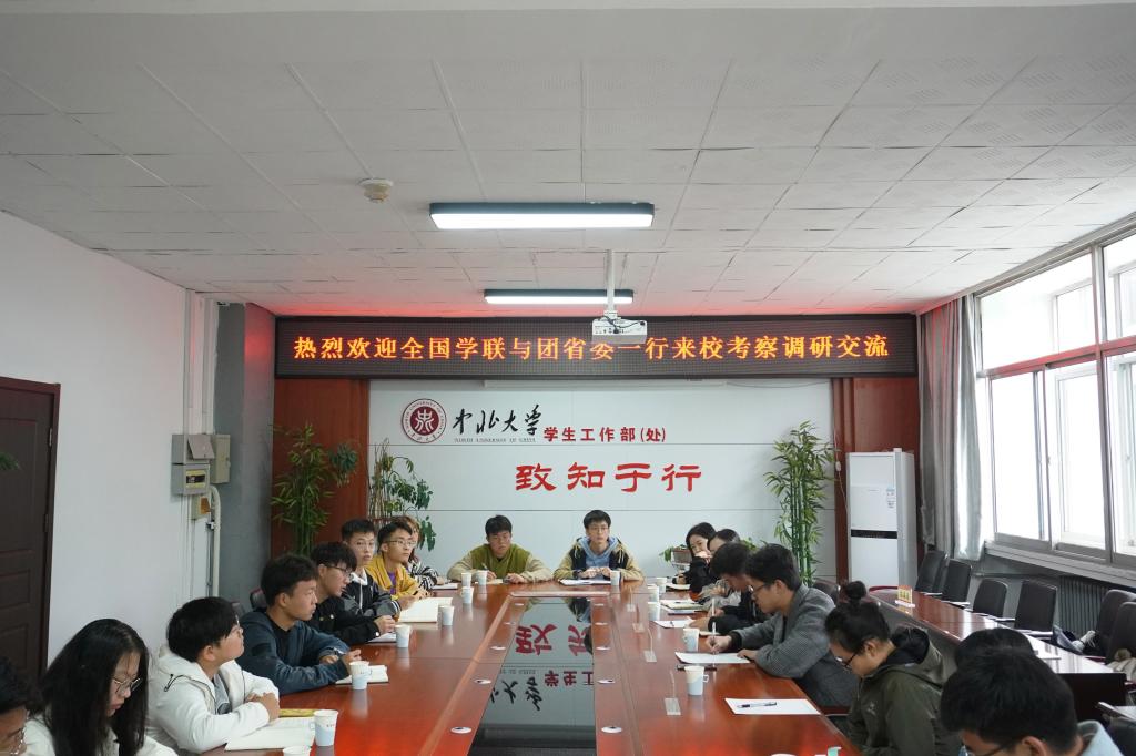 近日,全国学联驻会主席刘子豪、敖国强,团省委学校部杨蓉、省学联驻会主席张宝文一行莅临我校,就学生会、研究生会改革情况进行调研交流座谈,校学生会、研究生会主席团成员及各院学生会执行主席参加本次交流会。
