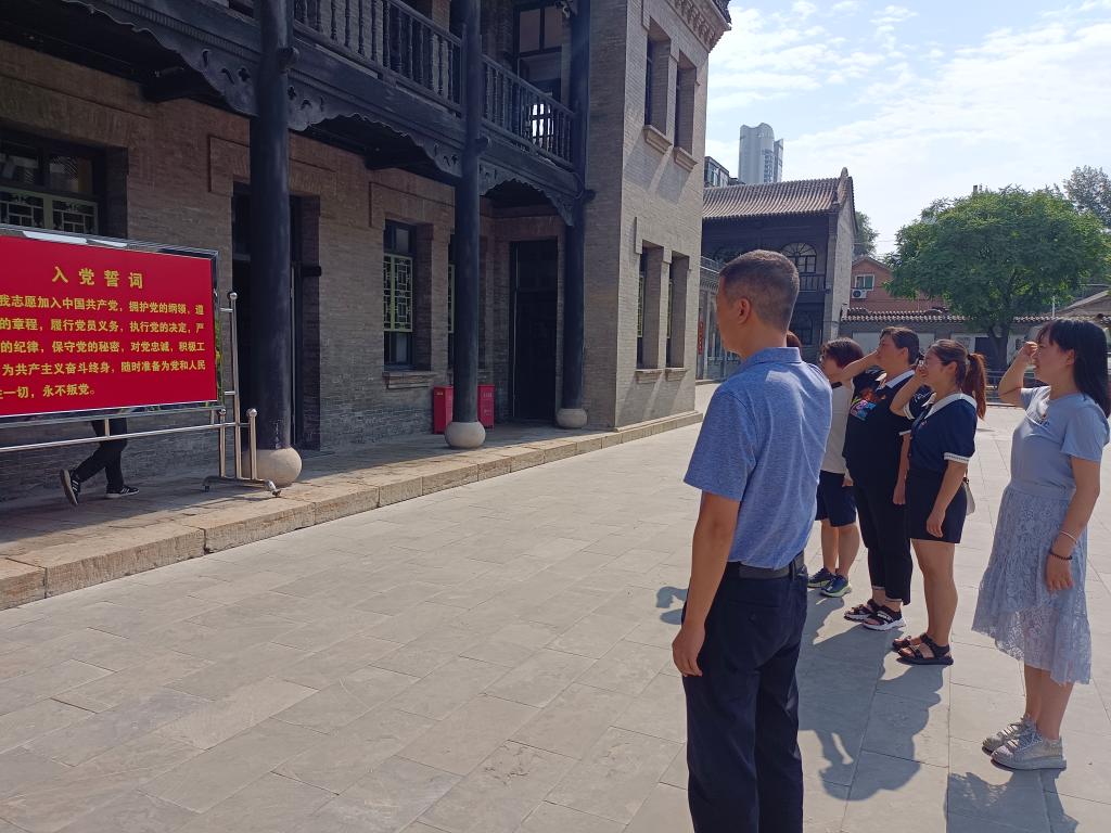 纪念馆前,支部成员佩戴党徽,举起右拳,在校团委书记魏翀的带领下,面向党旗庄严宣誓,用铿锵有力的誓言许下支部成员最为神圣和庄严的承诺,表达了永远跟党走、奋进新征程的决心和信心。