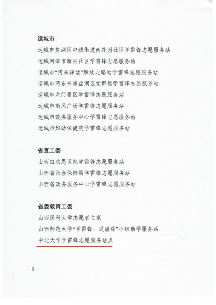 近日,山西省文明办下发《关于确定第三批省级学雷锋志愿服务站(点)的通知》(晋文明办〔2023〕13号),确定第三批省级学雷锋志愿服务站(点),我校学雷锋志愿服务站成功入选。