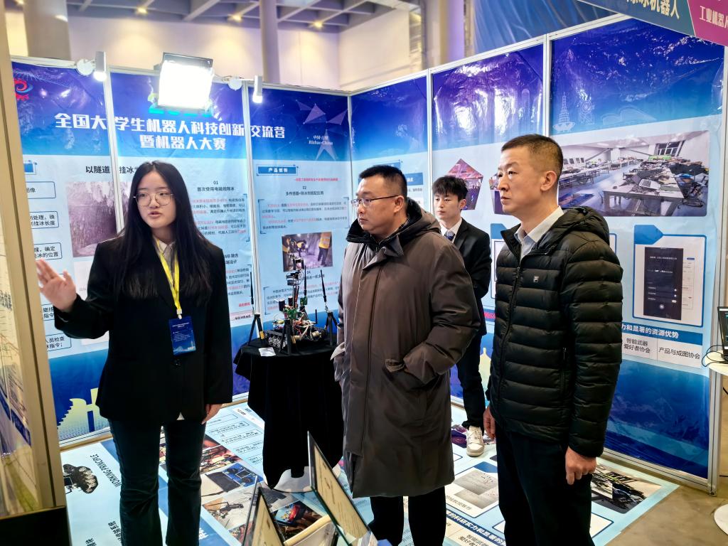 2023年12月17日至19日,由共青团中央、工业和信息化部共同主办的2023年全国大学生机器人科技创新交流营暨机器人大赛终审决赛在山东省日照市举办。我校项目《破冰使者——基于ZigBee与UWB的融合定位除冰机器人》荣获全国二等奖。团省委学校部刘晋部长和校团委相关负责人慰问了参赛师生,询问了团队的备赛情况,并到作品展台参观调研了我校作品。