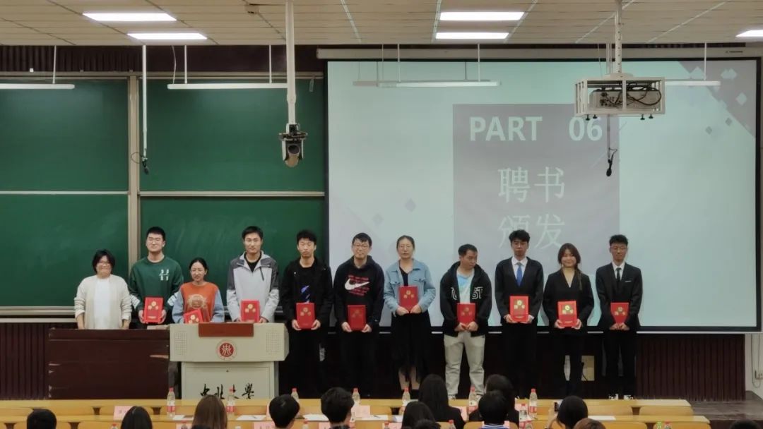大会第四项,校团委社团部焦婷婷老师为2022-2023年学生社团联合会主要学生干部颁发聘书。在任职的一年里,他们坚守本职工作,认真负责,为社联的发展做出了自己的贡献。光荣的聘书,既是对他们在学生干部岗位上作出成绩的认可,也是一种激励,希望他们在今后的学习工作中继续保持优良作风,发挥模范作用。