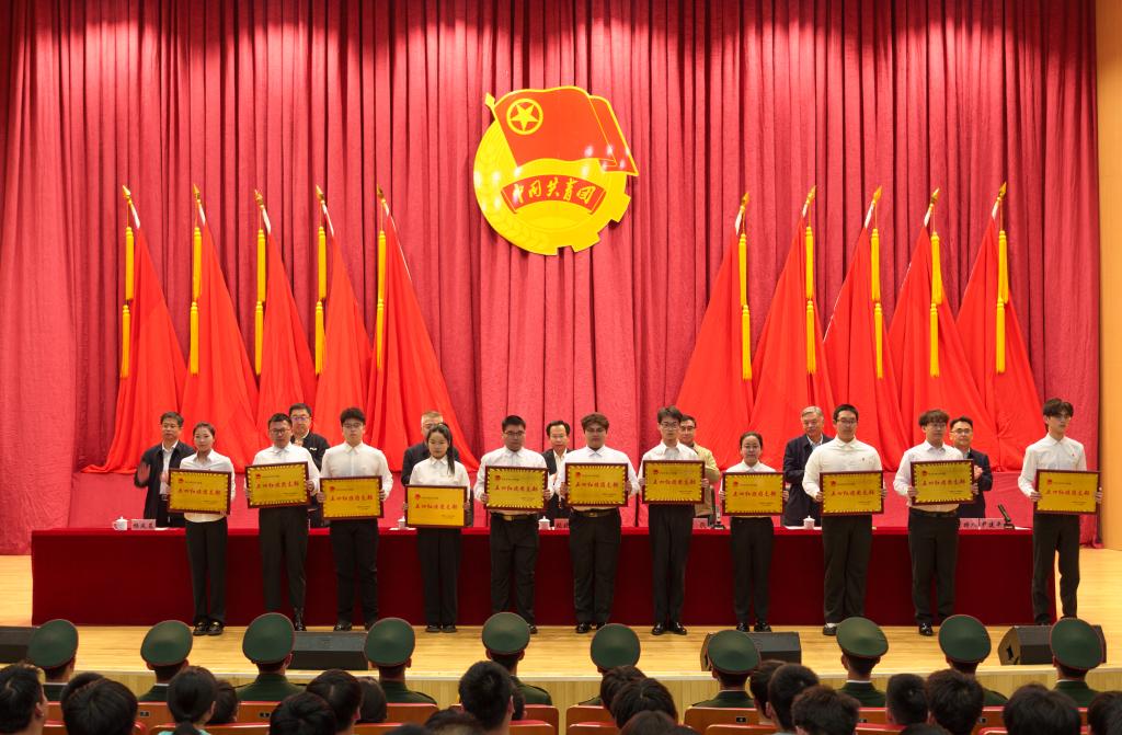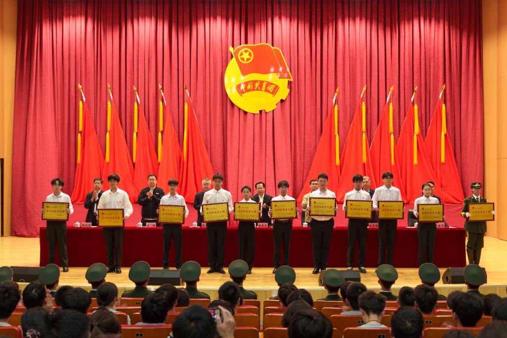 大会对获奖团体和个人代表进行表彰:今年共评选出五四红旗团委6个、先进团委3个、先进团总支11个、五四红旗团支部22个、先进团支部98个、优秀团日活动团支部19个、优秀团务工作者10名;同时还评选出“校园十大青年人物”“校园十大青年人物”提名、41位“优秀共青团干部标兵”、67位优秀共青团员标兵、312位优秀共青团干部、609位优秀共青团员。