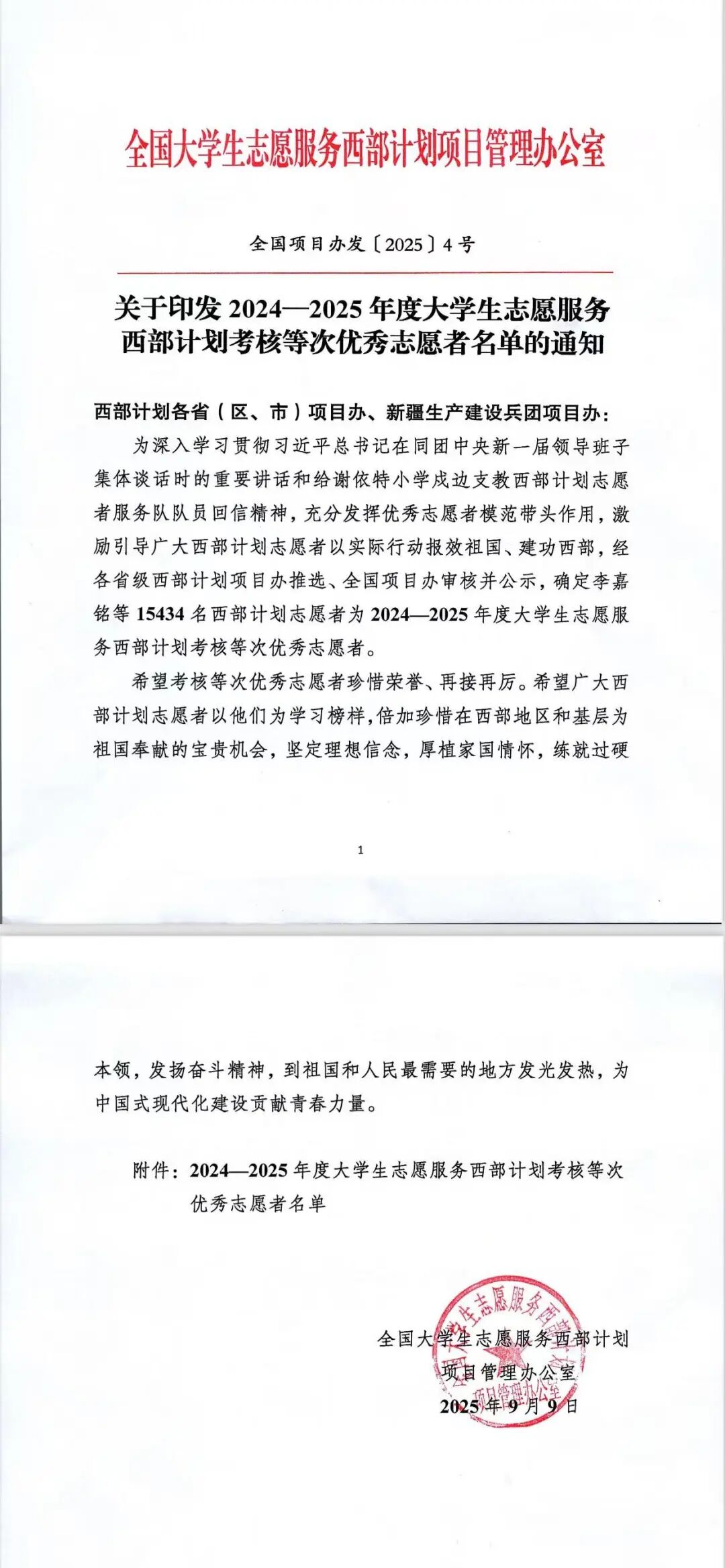 近日,全国大学生志愿服务西部计划项目管理办公室发布《2024-2025 年度大学生志愿服务西部计划考核等次优秀志愿者名单的通知》,我校第 26届研究生支教团曹璟琦、杨龙飞两名队员凭借突出表现,获“优秀志愿者”称号。