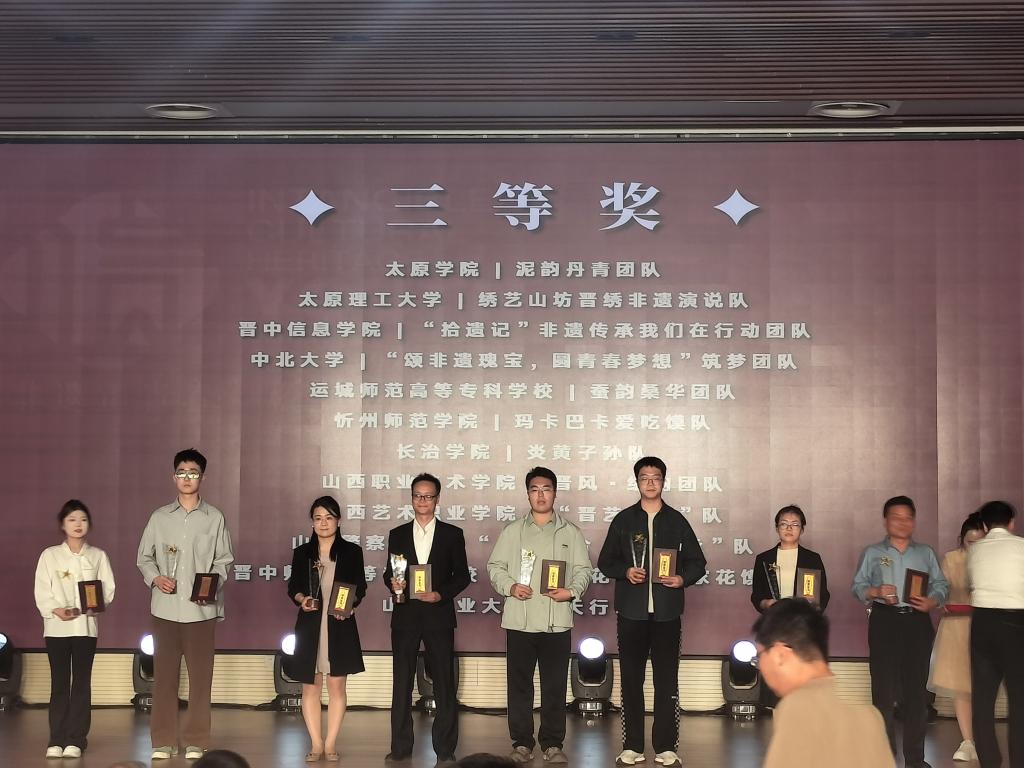 近日,由山西省文化和旅游厅、山西省教育厅和团省委联合主办的2024山西省大学生“非遗正青春”校园演说大赛圆满落幕。我校“颂非遗瑰宝,圆青春梦想”筑梦团队荣获本次大赛三等奖和最佳传承奖,并受邀参加2024山西省大学生“非遗正青春”校园演说大赛特色节目展演暨颁奖仪式,充分展示了中北大学在非物质文化遗产传承与保护方面的坚定决心与卓越实力。