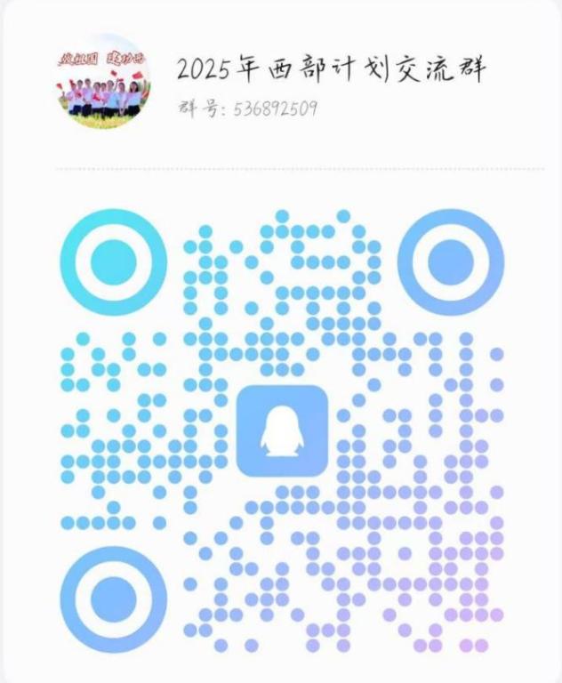 2.为保证通知实效性,请于2025年5月12日12:00前进入“2025西部计划交流群”(扫描下方QQ群二维码),进群后按照要求修改群昵称。