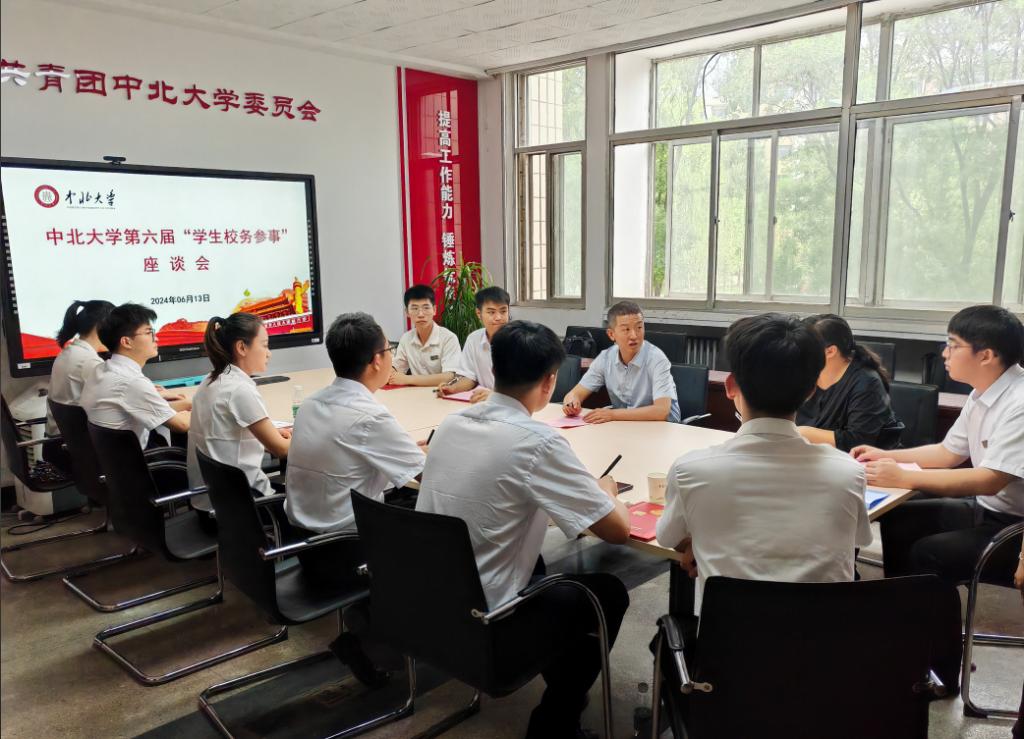 6月13日下午,校团委在德怀楼201会议室组织召开了中北大学第六届“学生校务参事”座谈会,校团委书记魏翀、第五届学生校务参事代表、第六届学生校务参事参加会议。
