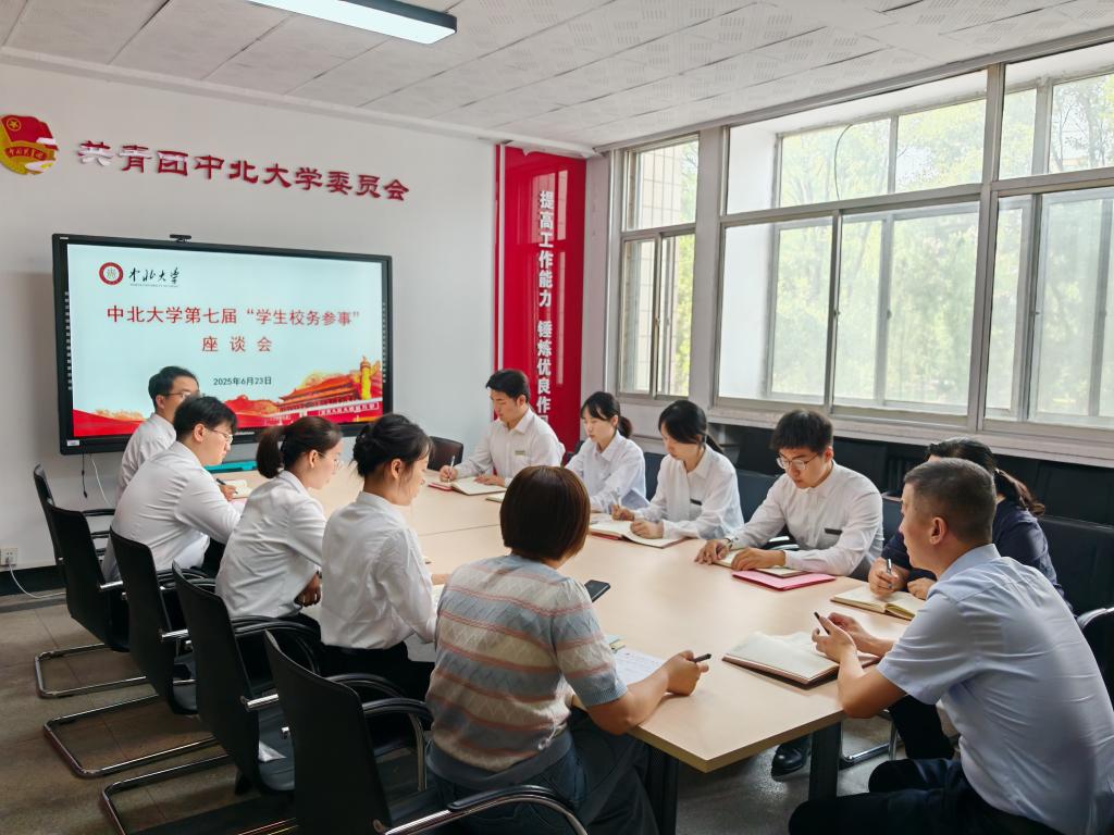 6月23日下午,中北大学第七届“学生校务参事”座谈会在德怀楼201会议室顺利召开,校团委书记魏翀、副书记王彩萍、第六届学生校务参事代表以及第七届全体学生校务参事参加会议。