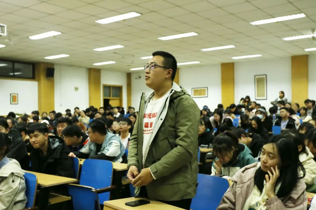 在现场交流环节,同学们争相提问,纷纷表示要深入学习领会习近平总书记对青年一代的殷切期望,自觉做到爱国、励志、求真、力行,不忘初心,自觉肩负起使命担当和责任担当。