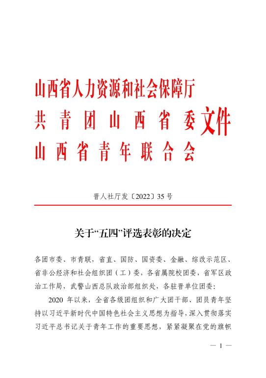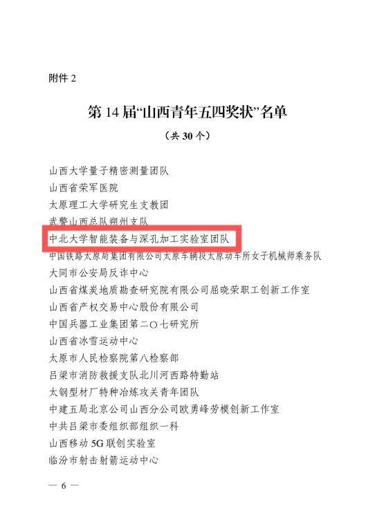 2022年是中国共青团建团100周年。近日,山西省人力资源和社会保障厅、共青团山西省委、山西省青年联合会共同开展对2021年度做出突出贡献的先进集体与优秀个人的评选表彰,我校团委荣获“山西省五四红旗团委”称号,智能装备与深孔加工实验室团队荣获第14届“山西青年五四奖状”称号。“山西省五四红旗团委”和“山西青年五四奖状”是团省委授予全省基层团组织和全省优秀青年团队的最高荣誉。