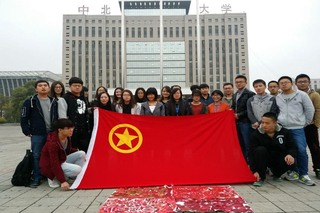2016年10月23日,我们15071041团支部进行了纪念长征七十周年的团日活动。我们模仿长征行动将全班同学分为三组,分别去了山西大学,山西财经大学和太原理工大学。带着我们自己用红叶做的红旗,宣传长征精神。