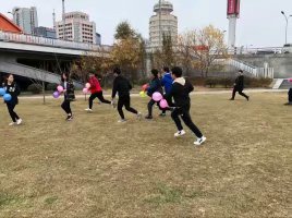 中午大家以宿舍为单位进行了午餐,下午在汾河畔边进行了抓气球游戏,大家情绪十分高涨,使原本严肃的气氛变得欢快起来。