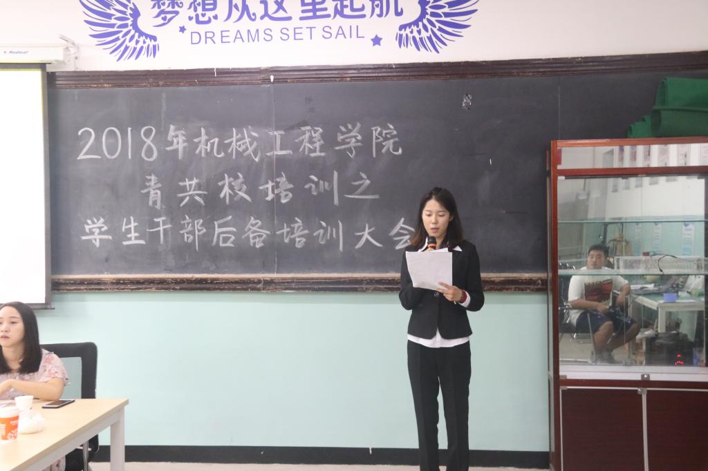 新学年即将到来,学生工作也将开展新的篇章。为更好培养学生干部的各项能力,机械工程学院于8月27日上午在05105教室举行“2018年机械工程学院青共校培训之学生干部后备培训班”启动仪式及培训。院学生科科长王子威、院团委书记王瑾、学生科老师王慧慧、车建伟出席,院团委学生会后备干部及二年级团总支学生会干部参会。