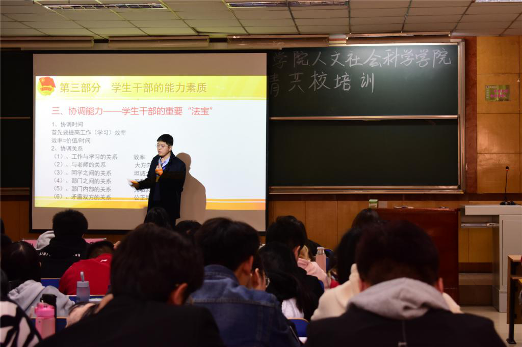 校团委副书记刘玉巍在讲话中强调,党旗所指就是团旗所向,共青团组织要提高政治站位,以党建带动团建;学校各级团学组织要围绕人才培养的工作中心开展工作,营造优良学风,学生干部要带头提高思想认识,改良工作作风,锤炼过硬本领。人文社会科学学院党委副书记王晓东对本次青共校培训的课程安排、考核标准、纪律要求作了介绍。艺术学院党委副书记田维飞做青共校培训动员讲话。
