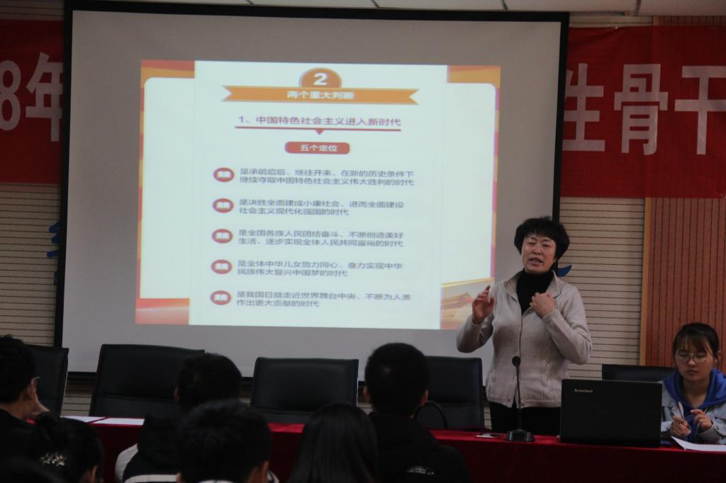 典礼结束后,我院邀请到校团委书记李俊华、经济与管理学院党委书记王琳、材料科学与工程学院团委书记毋登辉和人文社会科学学院团委书记加俊为培训班授课。李俊华书记以“贯彻落实团学改革任务,推动团学组织创学发展”为题,以学生组织中的不良事件为例,督促学员树立学生干部的优良风气,并强调团员应增加团学知识,为推动共青团改革出力。王琳书记带领学员学习习近平总书记在北大师生座谈会上的讲话,从发扬五四精神、三项基础工作、四点殷切希望三个方面鼓励青年学生立鸿鹄志,求真学问。毋登辉书记激励学员做一名合格的学生干部,提高素质,发挥模范带头、桥梁纽带、组织凝聚的作用,成为学院发展的得力助手。加俊书记向学员传授大学生做好社会实践和社会调查的方法,通过讲解多起经典调查案例,指出大学生应具备敏锐的洞察力和将心比心的社会情怀。