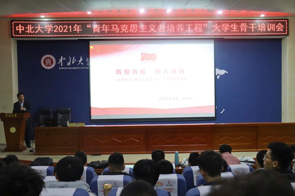 中共山西省委讲师团宣讲员李志强以“红色山西——地图上的山西党史”为主题,以中国共产党在山西的发展历史作为切入点,通过精美的地图、真实的图片还原历史全景,以图述史,以史论图,将政治性、思想性、艺术性相结合,用史实说话,增强表现力、传播力、影响力,生动传播红色文化,讴歌了伟大的建党精神。共青团山西省委团校副校长曲宏飞以“习近平总书记关于青年工作的重要思想”为主题,从关键词、核心要领、重要内涵三个方面生动、详实地讲述了习近平总书记关于青年工作的重要思想,激励大学生骨干要将自己的梦想与中华民族伟大复兴的中国梦结合起来,明确职责使命,不断奋进,不负韶华。山西省委党校教务部副主任崔永河以“学习贯彻‘七一’重要讲话精神为主题”,从习近平总书记“七一”重要讲话对于青年的寄语入手,引入“国之大者”,解读了青年骨干学习习近平总书记“七一”重要讲话精神的重大意义,主题鲜明、形式生动,兼具理论高度和全局视野,为同学们深入学习贯彻习近平总书记“七一”重要讲话精神提供了具体指导。校团委书记顾宁以“深入学习贯彻中国共产党中北大学第三次代表大会精神”为主题,从第二次党代会以来的工作、新时期的历史使命与办学思路、全面开启新征程的主要任务和扎实推进党的建设新的伟大工程四个方面,系统、全面地向同学们宣讲了中北大学第三次党代会精神,他强调大学生骨干要解放思想,提振信心,凝心聚力,在学校创建“双一流”大学的节点上,进一步明确自身的责任和目标,引领带动全校广大团员青年,向着创建“双一流”的宏伟目标奋勇前进,为谱写新时代中北大学高质量发展的崭新篇章奉献自己的青春力量。化学工程与技术学院团委书记李艳以“学生干部的业务素质和工作方法”为主题,指出学生干部是老师与同学之间的桥梁和纽带作用,在工作中,学生干部要善于总结、增强团队意识、确保信息畅通,不断提高综合素质,积极发挥表率作用。最后,优秀学生代表做了“学生骨干经验分享”交流会,大家分别从团学工作经验、如何平衡学习与工作的时间、团队特色和团队精神、团支部建设和奉献精神等方面分享自己的工作经验及感悟,同学们反响热烈。