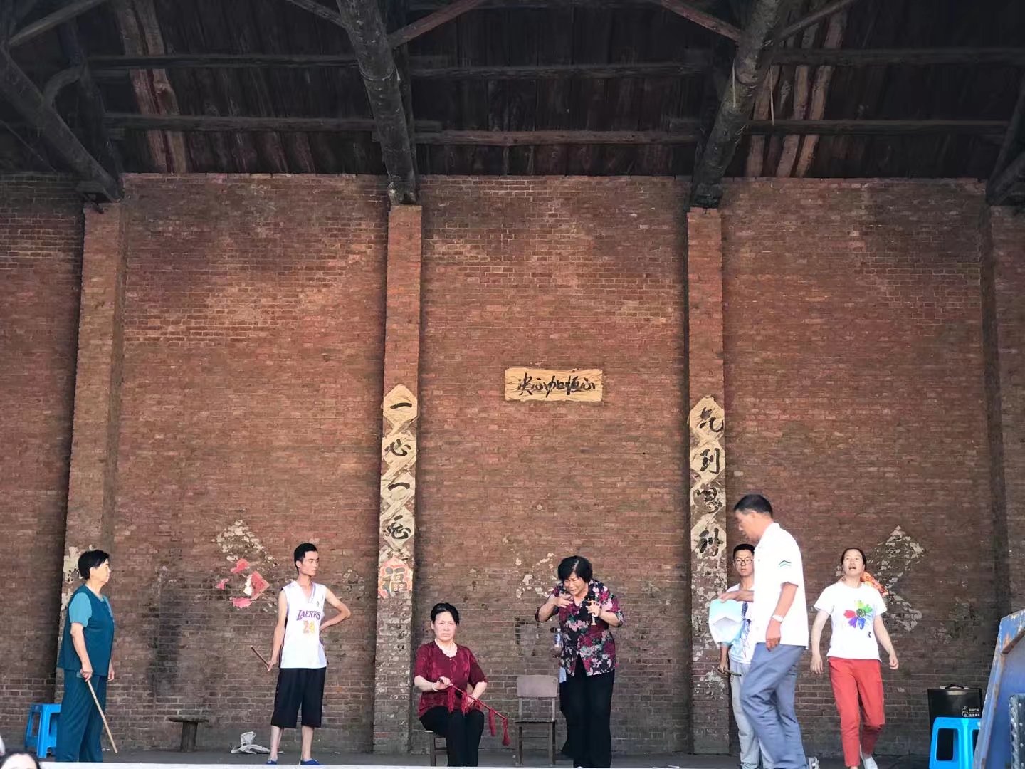 7月11日,上午联系高平市人民剧团确定第二天行程后,我们应约来到了高平市店上村上党落子剧团的排练现场。正如团长奶奶(红衣)说的那样,由于没有正规的排练场地,剧团常常借村里的古戏台进行排练,而且很受各村村民们欢迎。