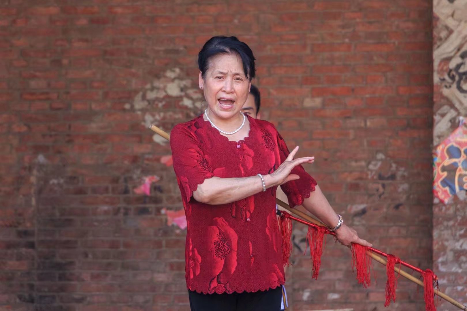 烈日丝毫不减大家的热情,引子声响,排练开始了。对于台下看戏的村民们,前辈们的状态就像是面对剧院的观众一般,排练过程丝毫不敢懈怠。