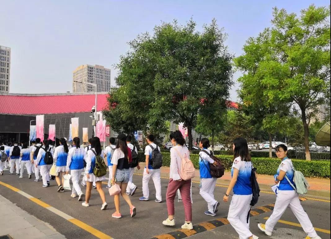 除此之外,我们还有一群朝气蓬勃的负责运动员接待的小姐姐们,看!他们正朝我们走来,他们穿着白色的裙子,举着各运动队的牌子认真的排练,老师也很认真地指导他们,教他们如何站、如何拿着牌子、如何达到相应的项目地点、如何与其他引导员配合等具体事项。相信他们在几天后的体彩比赛中一定是一道最靓丽的风景线!