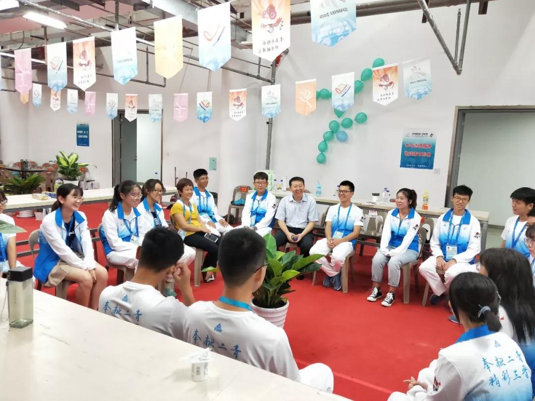 在二青盛会即将到来的日子,我校团委书记顾宁专程来到志愿者之家探望志愿者,并带来了一些书籍和吃的。志愿者与书记围坐在一起,交流这几天服务的过程和心得。书记不时点头称赞,同时针对志愿者遇到的困难给出了建议。他还鼓励志愿者要继续带着热情投入到工作中。随后,书记参观了体操场馆的各个功能房,并留下来与志愿者一起吃午饭。顾书记在志愿者们最疲惫的时候前来探望,为他们加油,这更加坚定了他们的工作信念、增强了他们的工作激情。相信志愿者在今后的工作中将会以最昂扬的斗志和饱满的精神状态,投入到今后的服务中。
