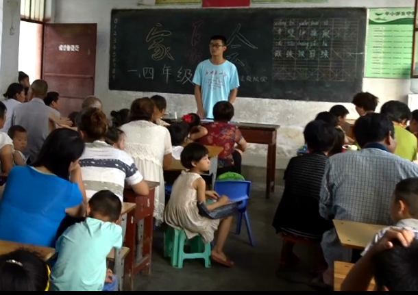 2016年7月10日,星火实践队于上午9时在河南省南阳市唐河县郭滩镇大树赵小学进行家长座谈会,邀请了1—4年级各班家长,特邀学校校长作为此次会议嘉宾,会上,校长发言讲解了家庭和学校教育的重要性,他说道“家庭教育和学校教育同等重要,应该齐头并抓,家长应该及时学生思想状况,做到家校相通”。实践队队长吕忠钢和其余队员也做了发言,并提出了自己的意见和想法,也普及了一些学习方法。