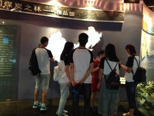 之后实践队员来到了中国煤炭博物馆。博物馆分三部分,第一部分是位于地面三层的陈列,第一厅通过图片灯光和实物展示来介绍各个省煤炭的分布、开采及使用情况。二厅陈列着煤精所做成的工艺品。三厅除了介绍煤的生成发展到开采的历程,还有一个4D影厅,使人们更直观地感受到煤炭这种不可再生资源形成的不易,同时具有教育意义,让我们树立节约资源的意识。第二部分在地下,是对于古代、近代、现代三种井下采煤的实井模拟。第三部分则在博物馆的出口处,主要介绍山西的壁画和有名的建筑,陈列着多个建筑模型。
