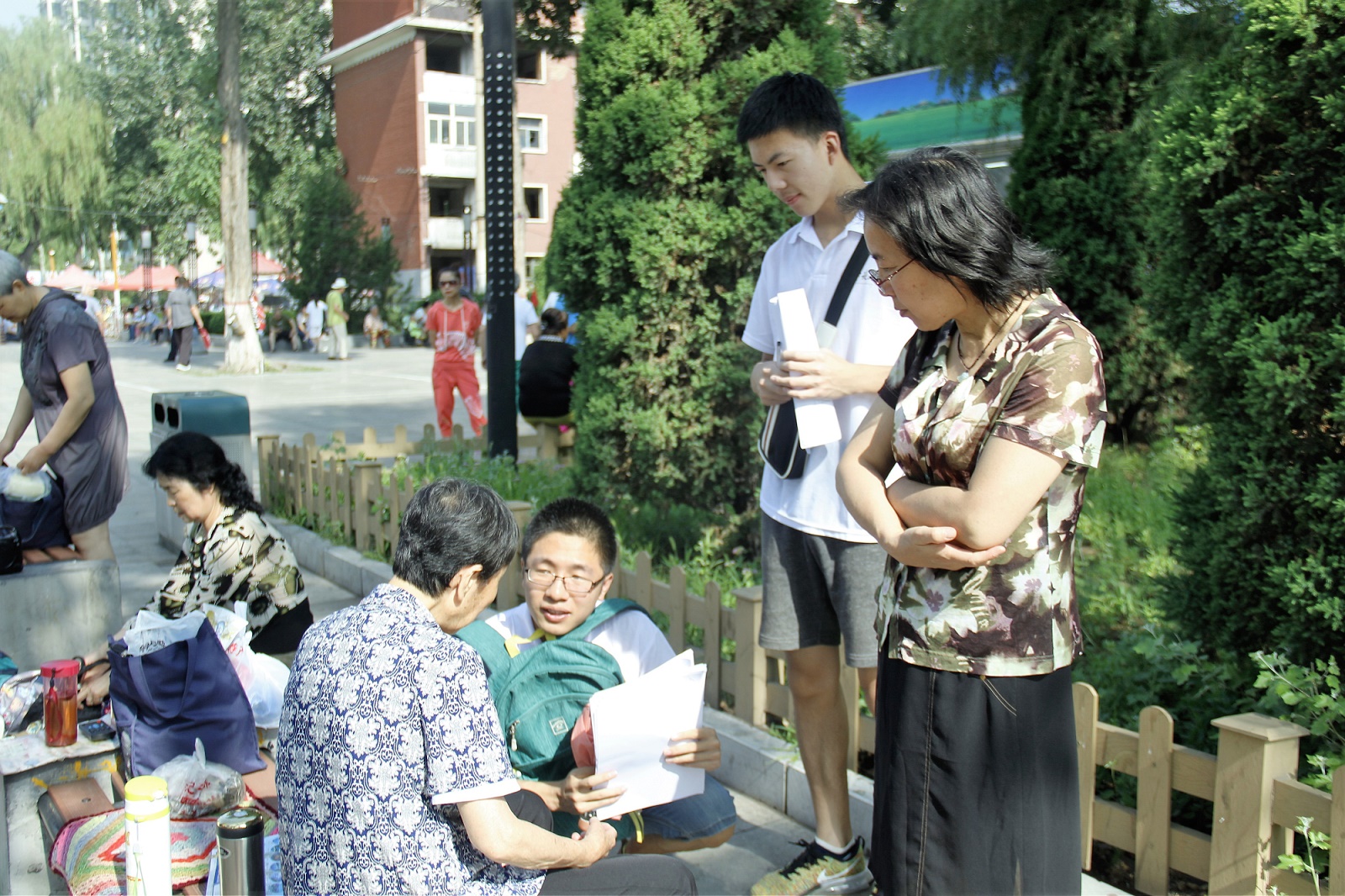 到达龙潭公园,队员们分为三组,对在公园里的老人进行问卷调查。从调查问卷及交流中,队员们发现在公园的老人大致分为与子女同住的农村老人,以及企业单位退休老人。老人们的经济来源一般为养老金及子女赡养费。队员们还了解到大多数老人对政府出台的养老政策不了解,希望政府能加大宣传,并加大对已出台政策执行的监管力度,让养老难问题真正得以解决。而针对老年人的日常活动,老人们向队员们提到,社区里的集体老年活动较少等问题,希望社区能多组织文娱活动丰富老年人的生活。