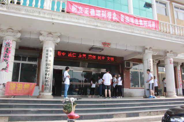 规矩照旧早上起床进行简单的准备之后,队员们便一起乘公交车前往郭家堡村村委会。上午九点左右,实践队顺利到达郭家堡村村委会,郭家堡村因拆迁致使村委会内异常嘈杂工作,实践团积极与村委会的工作人员进行接触并主动找到村治保主任进行沟通,在团员的努力下治保主任郭主任同意了实践队的采访请求。采访过程中,郭主任介绍:“郭家堡村是城郊村,由于其地理位置较为优越紧邻城区,村民基本就在附近就业,村内便无留守儿童”。紧接着实践团员们向郭主任询问了村里普法教育工作的开展情况,郭主任笑着对我们说:“村里的普法宣传有所开展,而且村里正逢拆迁经济纠纷比较多,普法取得的效果还是不错的”。实践团员们继续问郭主任村里关于未成年人法律意识培养方面有没有什么作为,郭主任说:“关于未成年人这方面的话没有,主要我们也不会用。给孩子们普法,主要还是交给学校负责,他们应该讲这个”。由于郭家堡村的学生与城区学生在一起上学,实践团员们询问了郭主任关于城乡孩子存不存在差距的问题,郭主任说“我们的教育还是很好的,经济上也没有多大差距,升学率还不错,像今年高考,一本就有三四个,我们村挺重视发展教育的,考的好的孩子村里还有奖学金。要说差距主要还是农村户口跟城市户口碰到工伤啊,交通肇事什么的赔偿款有着一些差距”。