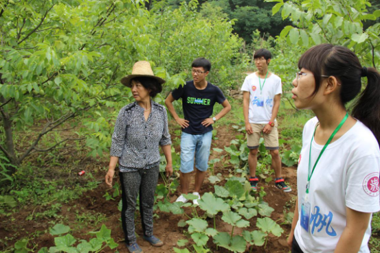 随后云帆“就是现在”实践队全体队员在那鹏飞老师的带领下来到了小河村周边的田间,队员们看着长势旺盛的庄稼、作物异常欣喜,是啊,这是田地的力量,这是庄稼人一辈子的荣光!队员们沿着田地边缓缓依次步入田间,初步了解了小河村当地种植的玉米等农作物以及核桃、花生等经济作物。这时的田间可谓“热闹非凡”,当地的庄稼人早已在田间忘我地劳作、耕耘,去实现自己毕生的梦想,完成自己没有尽头的伟业——是这一代又一代庄稼人以其辛勤的劳作养育着中华民族的子孙儿女,是他们坚守着祖辈最传统的基业;面对工业化、城镇化的热潮,他们对自己的土地爱得深沉、爱得彻底,他们不会抛弃自己的“孩子们”——他们用创业的艰苦精神试图在新的时代背景下赋予农业新的生命、注入全新的活力!