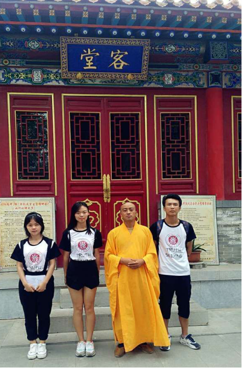 实践队员们先游览了一遍景区,从建筑及介绍中可以看出寺庙近几年重修的痕迹。由于龙华寺选址偏僻,加上今天不是重大节日,所以景区游客稀少。队员们随后拜访了寺庙里的本来法师,向他请教了寺庙的相关问题。从交谈中他们得知,由于景点不收门票,寺庙主要的经济收入来自于香火钱、文化活动和外界的捐助等。在讨论到寺庙的旅游发展时法师提到,龙华寺重新修建的目的是为了宗教文化而不是旅游,它的存在更偏向于文化传承。