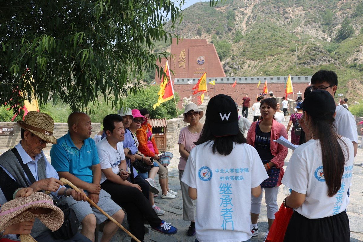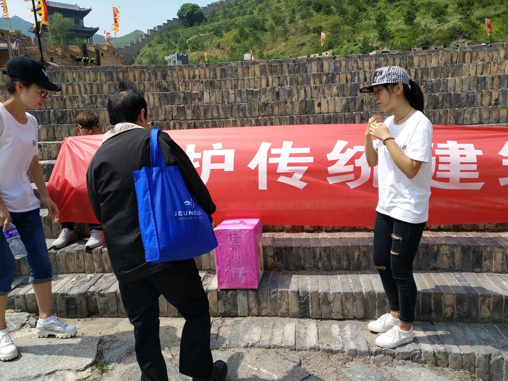 为保护雁门关景区的古建筑尽一份力量,理学院“继承者”实践队于2016年7月8日在雁门关景区进行了募捐活动。实践队员首先拜访了雁门关景区负责人张主任,向他说明此次社会实践的目的与活动的意义,一番认真的交涉过后,张主任欣然同意队员在雁门关景区进行募捐。上午10:00天气正好,实践队员们一如往常准时抵达目的地,进行募捐。他们分工明确,一部分队员为游客进行雁门关景点的讲解和景区文物的保护;另一部分人则倡导大家进行募捐。整个过程紧张而有序的进行。在途中我们遇到了一名大学老师,她鼓励实践队要脚踏实地做好社会实践活动,最后队员们与老师合照留念,募捐活动结束后,实践队将募捐的资金进行清点,并将募捐到的384元交给雁门关后勤服务中心,这些资金将用于景区警示牌的制作。实践队员虽然很辛苦,但想到能为景区做一点贡献,心里也十分欣慰。