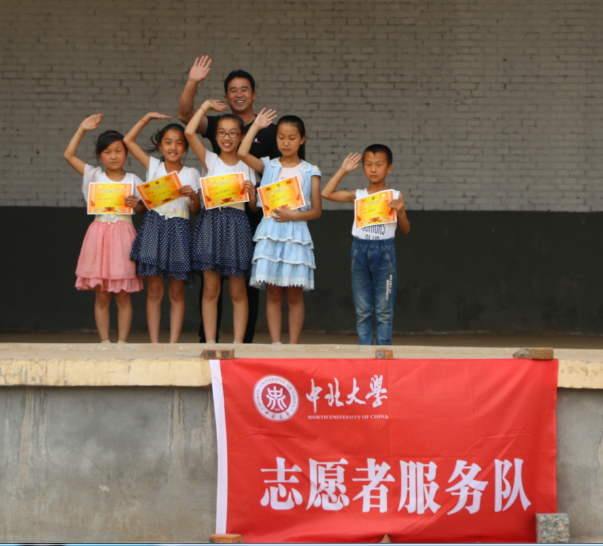 消暑晚会由“知行”实践队在空闲时间组织和排练,演出内容主要是歌曲和舞蹈。这是一场简单地、质朴的晚会,没有专业的音响、灯光,甚至没有一块好看的幕布,表演的节目也是老师、同学拼凑起来的,但台下的村民还是看的兴致勃勃。值得一提的是,晚会结束后,很多温庄的村民也上台唱起了歌,中北大学和温庄的友谊不断升华。晚会之余,李旭鹏和焦婷婷两位老师以及温庄村杨村长为对温庄村小学表现优异的小朋友进行了表彰并颁发了奖状。