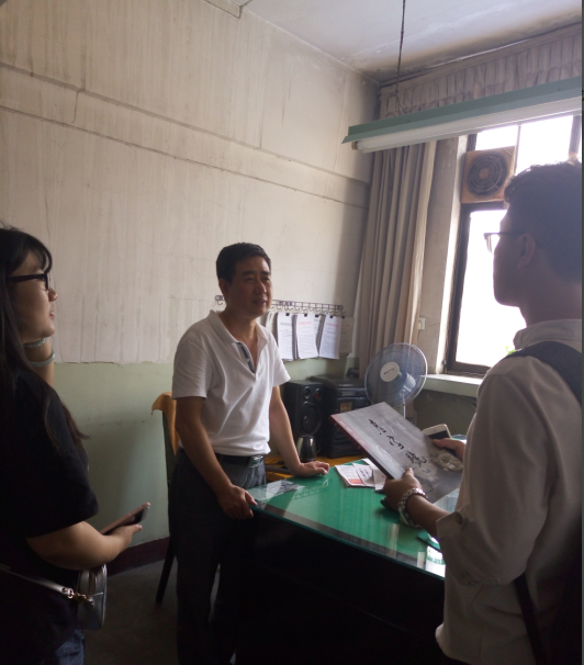 工厂主任郭师傅很热情地接待了实践队员,并给他们讲述了一些华泰厚的辉煌历史以及现在的发展状况。今日华泰厚已不同往日的繁华景象,许多店面都已经出租出去,订单也相对较少。一方面是因为现在处于淡季,另一方面是由于生活节奏的加快和生产效率的提高,大部分人都愿意选择成品衣而非生产速度相对较慢的手工制服,这是导致华泰厚现在这种景象的主要原因。