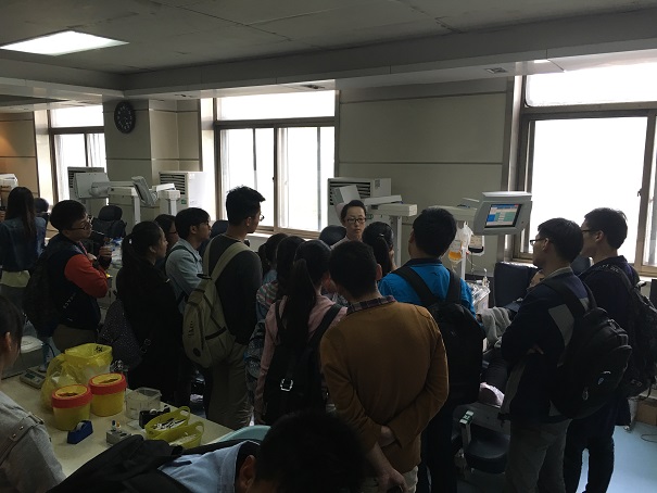 下午,全体学员到达太原市红十字血液中心,参观了全血、血小板采集设备,血液离心分离、检测以及保存流程,经过护士的讲解,同学们对于血液的基本知识和献血的注意事项有了更进一步的了解,充分认识到无偿献血对全人类救死扶伤的贡献,金奖献血志愿者们高尚而无私的奉献精神也深深的感染了他们。同学们的社会责任感和奉献精神得到进一步的提升。