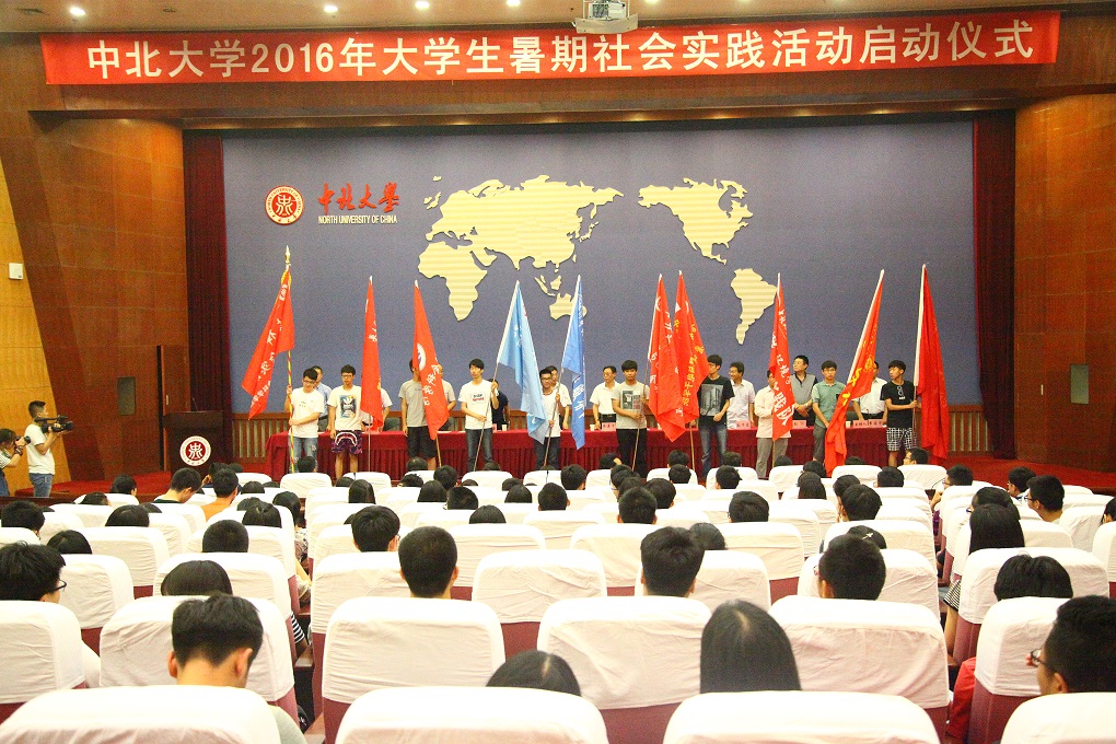 仪式最后,主席台领导为各实践队伍授旗,校党委副书记安建平教授宣布中北大学2016年大学生暑期社会实践活动正式启动。接下来,经评审最终确定的23支重点团队,将分赴山西各市县和北京、西安、四川、河北、深圳等地开展专题实践活动。