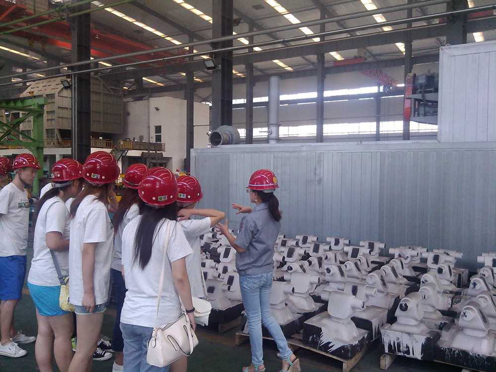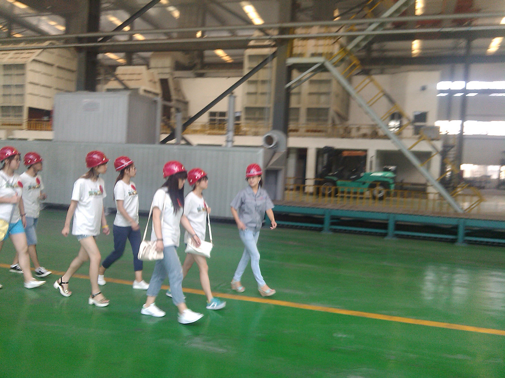 下午2:30,实践队在工作人员Lisa的带领下对各类生产线进行参观。首先参观铸造车间,实践队员看到了从来没有见到过的机器,工人们在认真的工作,机器有条不紊的对产品进行加工。机器的轰鸣,工人的认真,让实践队员们真正接触到了这个企业,感受到了它的气魄。随后,队员又参观了每个车间,工人工作严谨,就像车间的标语“你的工作态度决定你的生活质量”,他们勤劳的工作,为了有一个更好的生活。最后,队员们来到了工厂的检验中心,在这里有很多先进的仪器,也了解了他们的产品生产是多么严格。